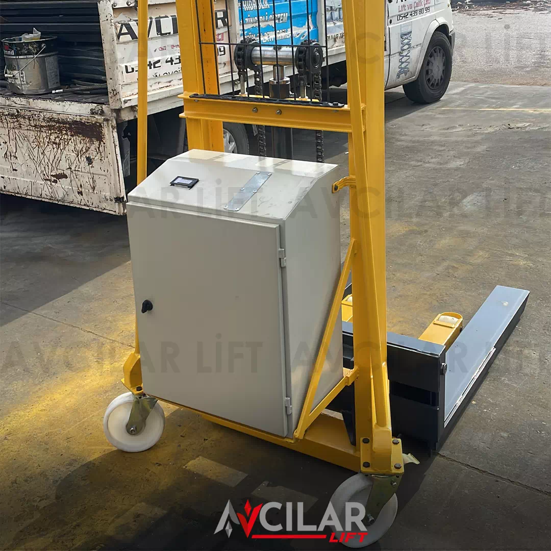 Kaldırma Mekanizması: Makineler, hidrolik veya mekanik bir kaldırma mekanizması kullanarak, yükleri dikey olarak kaldırabilir. Bu, yüklerin depolama raflarına yerleştirilmesini veya alınmasını kolaylaştırır.